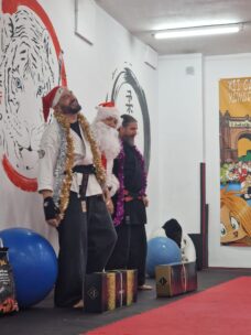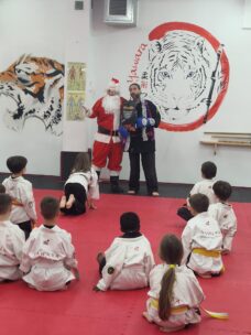 Avui hem tingut una visita molt especial al dojo. Pare Noel ha passat a saludar tant als més petits com als adults, repartint somriures, il·lusió i esperit nadalenc entre tots.